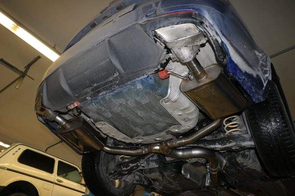 Skoda Octavia 5E RS – TDI – 4×4 mit Benzin-Endrohrblenden Halbanlage rechts/links ab Kat – Austritt der Endrohre in den originalen Benzin-Endrohrblenden